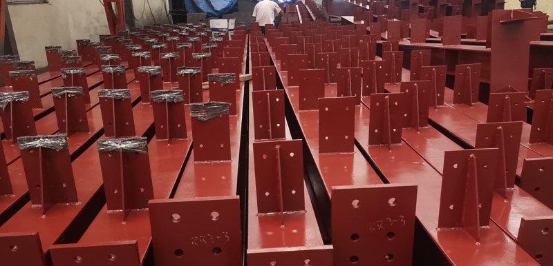 Stålkonstruktionsfabrik använder olika beläggningsmetoder, inklusive galvanisering, målning och galvanisering följt av målning, beroende på klientens applikation. Innan målningen måste ytan rengöras igen för att ta bort föroreningar som svetsslagg och stänk. Primer, midcoat och toppcoat appliceras sedan i följd. Vi kan också anpassa färgalternativ baserade på kundens behov. Under målningsprocessen måste tjockleken på varje kappa och intervallet mellan lager strikt kontrolleras för att säkerställa en enhetlig och fullständig finish.